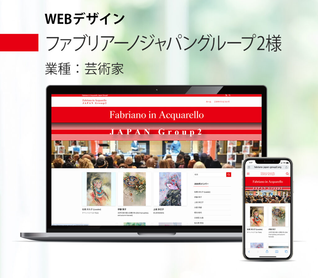 世界最大の水彩の祭典、Fabriano in Acquarello に参加している Japan Group2 の日本版ホームページを制作させていただきました。 https://fabriano-japan-group2.org このような機会に恵まれとても光栄です。ありがとうございます。これからもよろしくお... -