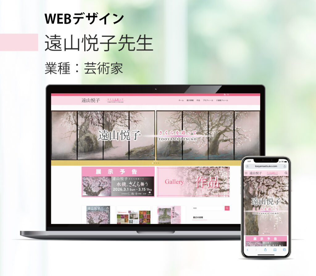 桜をテーマに大作を描かれる画家・遠山悦子先生のホームページを作成しました。主に、これからの展覧会の告知、これまでの展覧会の記録をインターネットに保存したいとのご要望でした。展覧会の情報を見やすく整理し、時系列に並べました。 https://tooyam... -