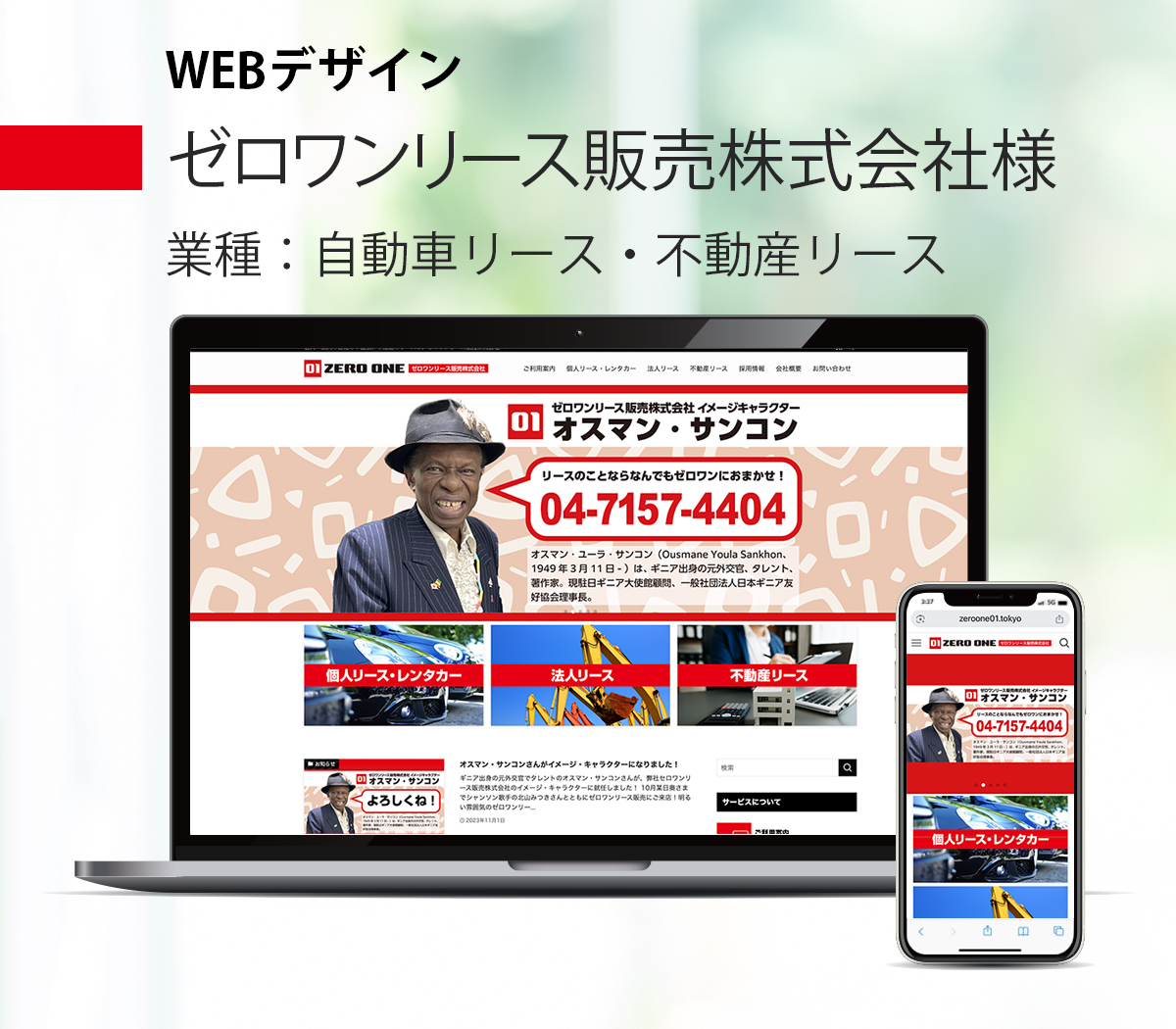 ウェブサイトをリニューアルさせていただいた、ゼロワンリース販売株式会社様のイメージキャラクターに、元ギニア外交官でタレントのオスマン・サンコンさんがご就任になりました。
